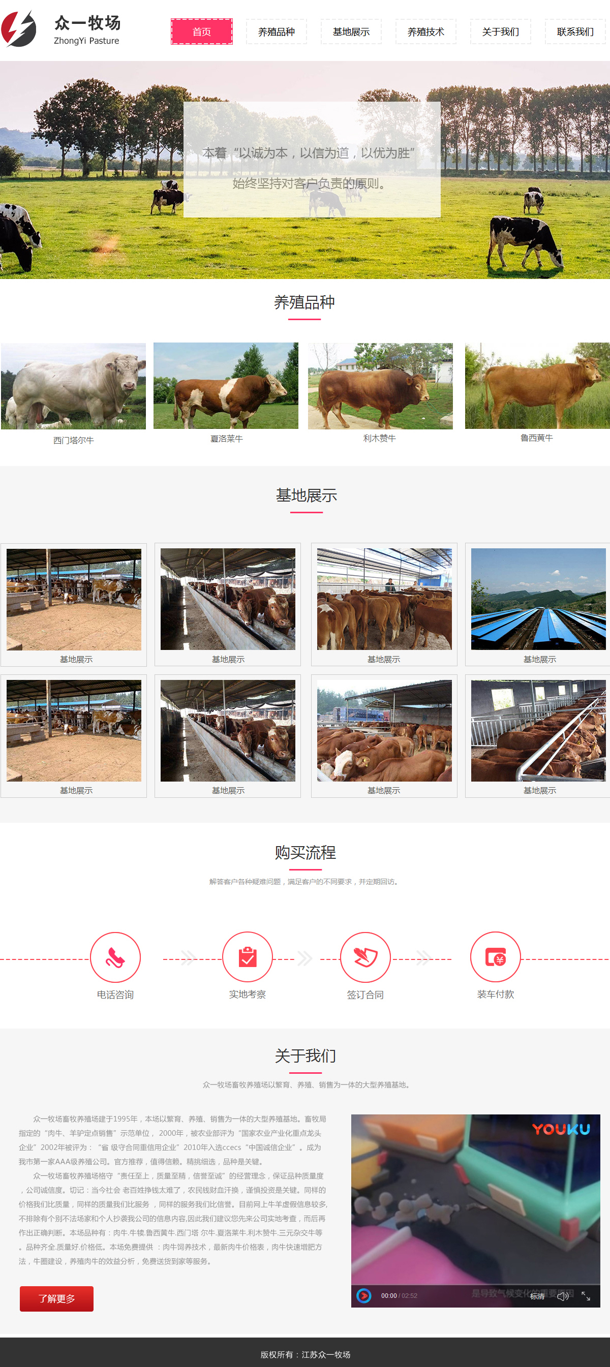 牧場安全講究的是專業(yè)與信任,我們采用了經(jīng)典色,并使用100%寬的網(wǎng)頁輪播自適應(yīng),將重要產(chǎn)品以滾動形式展示,并使用常見宋體字體,清新且支持各類系統(tǒng),完全以通欄的形式展現(xiàn),清爽,廣袤,身臨其境,是對牧場的詮釋,其實更重要的還是給客戶給安全感、信任感,從養(yǎng)殖品種到基地展示,展現(xiàn)一條龍相關(guān)服務(wù)......