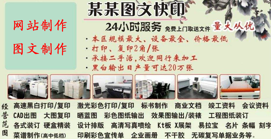 象一些提供諸如廣告制作、數(shù)碼寫真、彩色印刷、數(shù)碼輸出、圖文裝訂、設(shè)計排版,包括打字復(fù)印、名片制作等服務(wù)的均屬于圖文混排,即圖文制作這一類的。